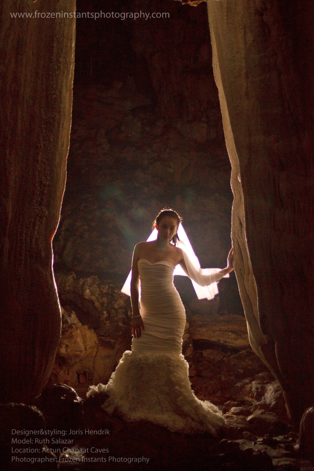 So the next time, clothing designer Joris Hendrik and I spoke of his next clothing pieces (2 wedding dresses) i suggested the cave as a great location. He said, ”let’s do it there”. Truthfully i didn’t know what the Cave trip entailed. I contacted the owner and tour guide to have the photo shoot there. He was willing and offered to take us on what he said was not a tour, he promised it’d be an ‘adventure’. And what an adventure that was!