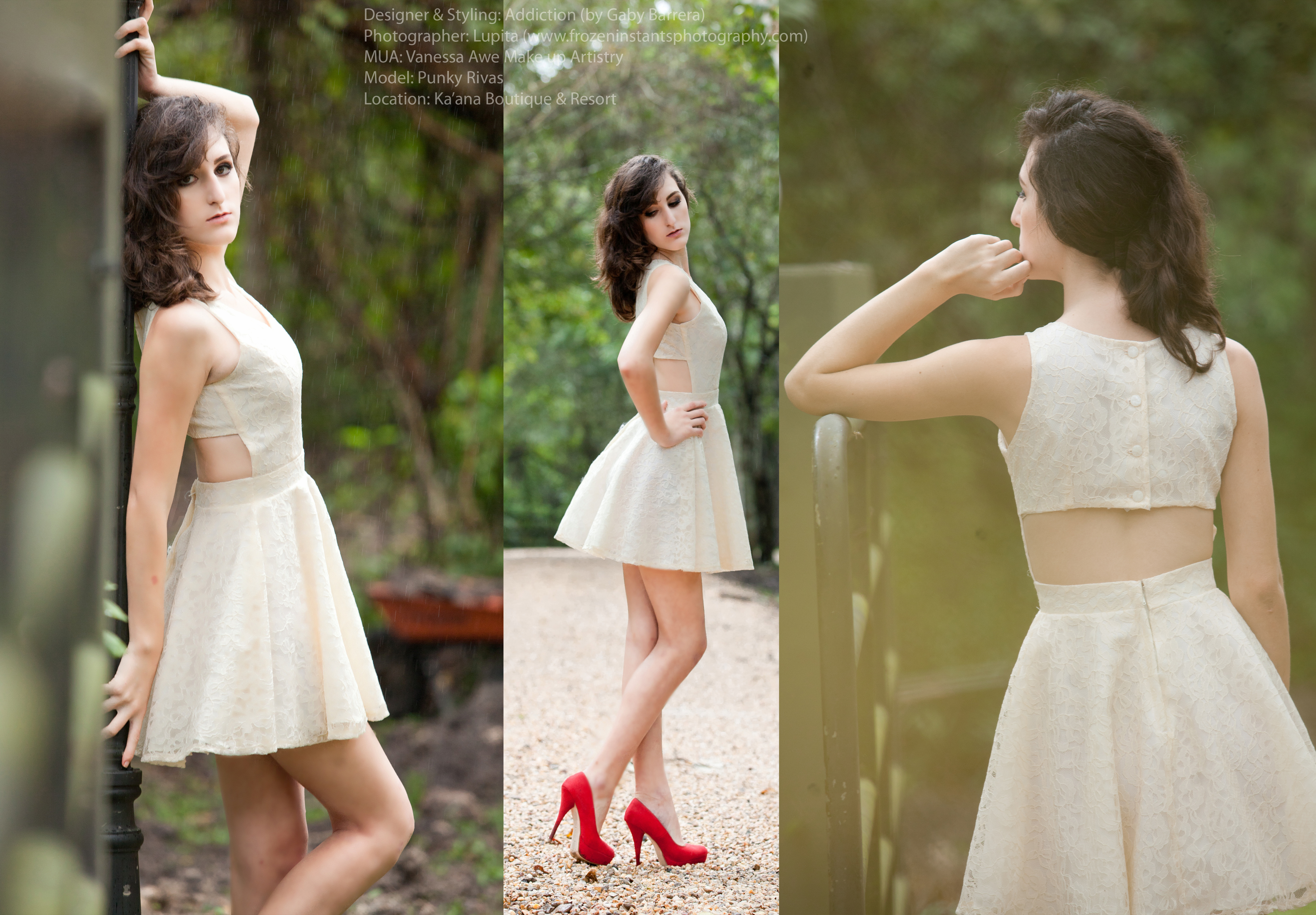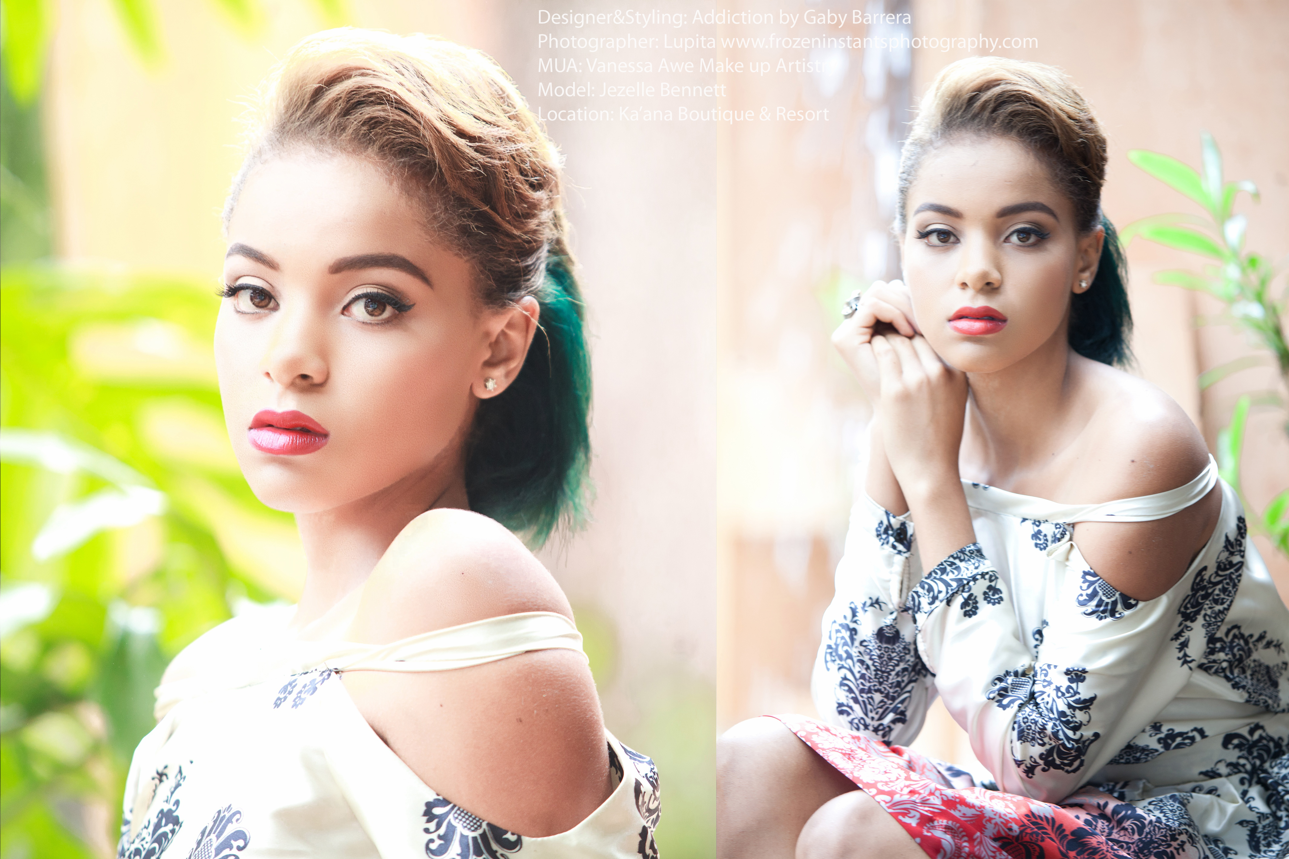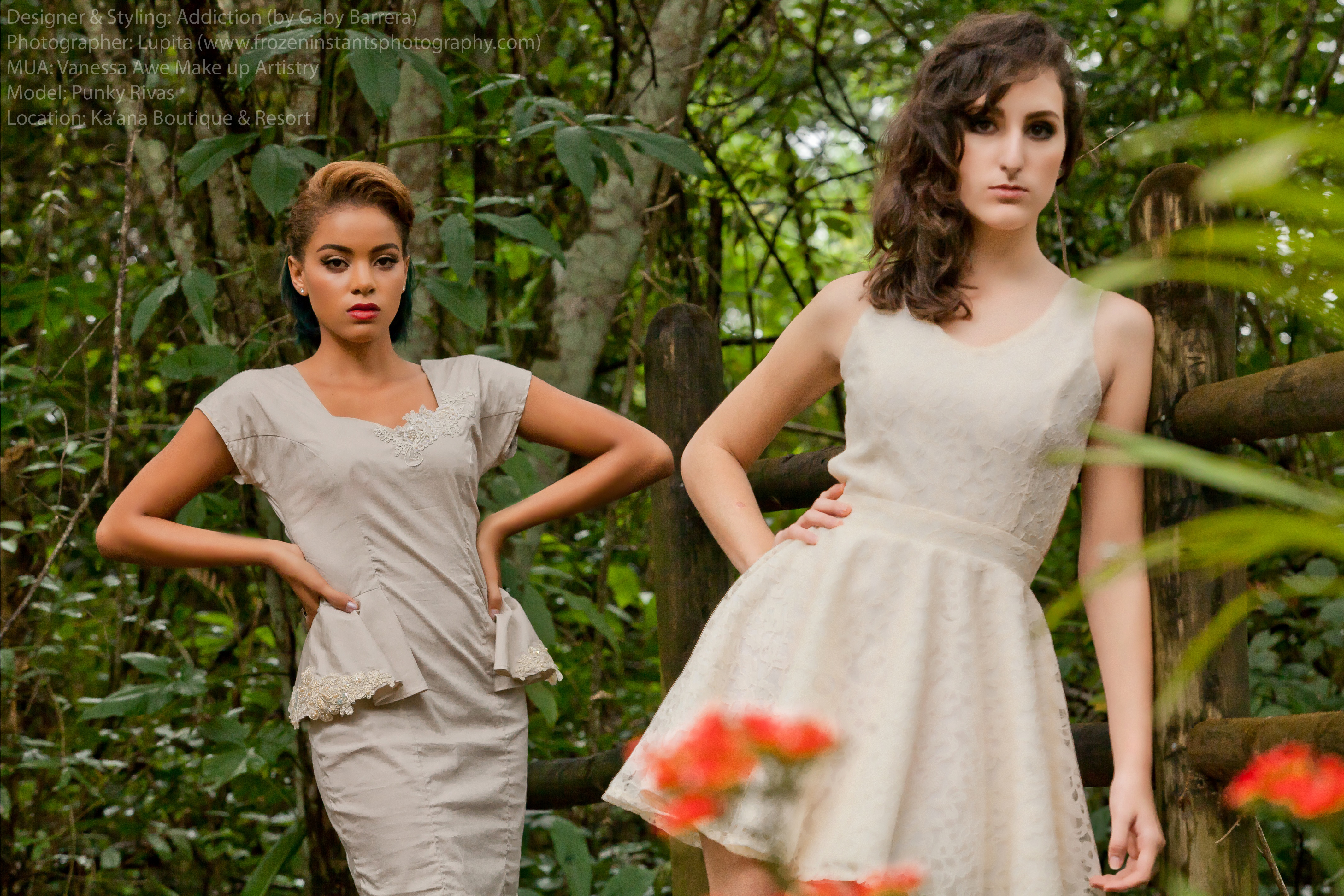 Ready to wear collection of clothing from Addiction by Gaby Barrera. Modeled by very talented Punky Rivas from San Ignacio and Jezelle Bennett. The Photo shoot took place at a very well know and gorgeous piece of heaven luxury resort Ka’ana Boutique and Resort in Cayo, Belize. And could i not forget to mention the fabulous job Vanessa did on the girls. I’ve had the opportunity to photograph Vanessa’s work before on brides as well. I would highly recommend her for brides who are seeking to blow their fiancee’s mind off on their wedding day or for portraits of yourself. She knows how to doll you up!!
